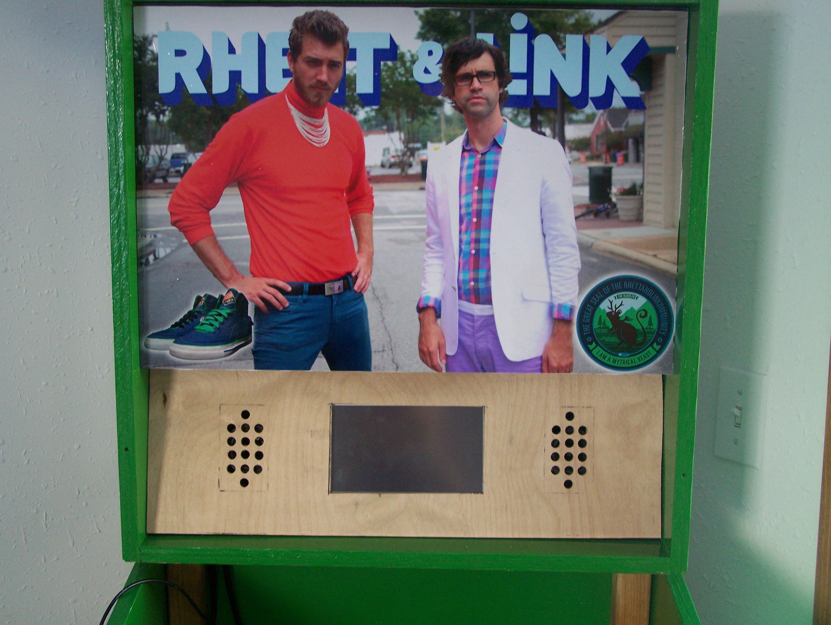 The board for the screen and speakers is obviously just set in there, and the artwork is only wedged in place. But you get the idea.